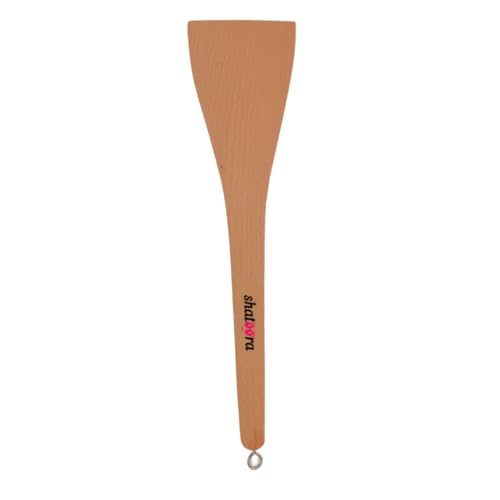 Shatoora - Premium Romanian Beech Wood Spatula with Hook – Flat Non-Stick Safe Flipping Tool