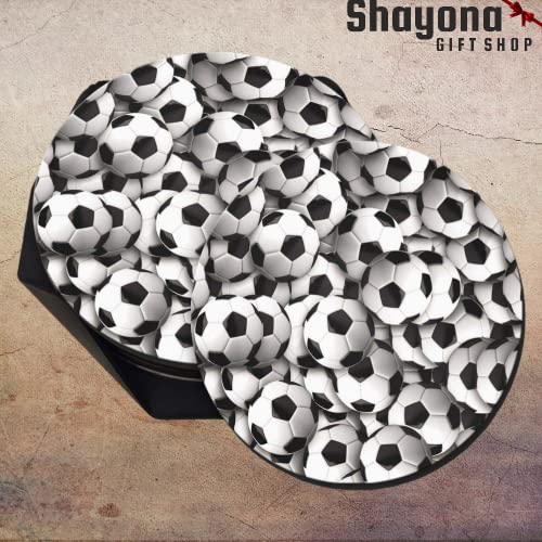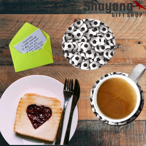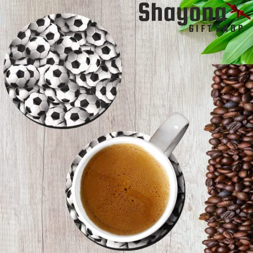 SHAYONA - 6 قطع من قواعد أكواب كرة القدم مع حامل من شايونا، أفضل قواعد أكواب مشروبات ماصة من السيراميك، مجموعة قواعد أكواب دائرية مزخرفة لكوب القهوة والمشروبات وقواعد أكواب المشروبات بقطر 9.5 سم