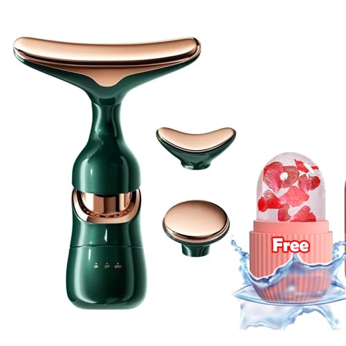 Sheetal Traders - 3-in-1 Electric Facial and Neck Massager with Ice Roller set - Anti-Wrinkle & Anti-Aging Device with Vibration Massage - Tightening, and Smoothing Tool for Glowing Skin (Green)