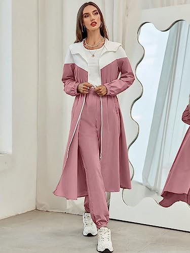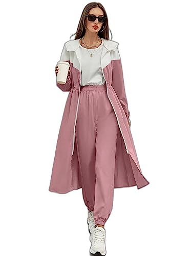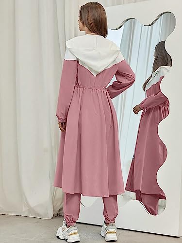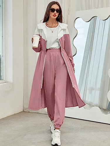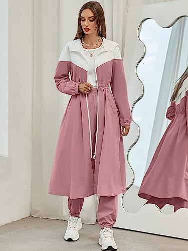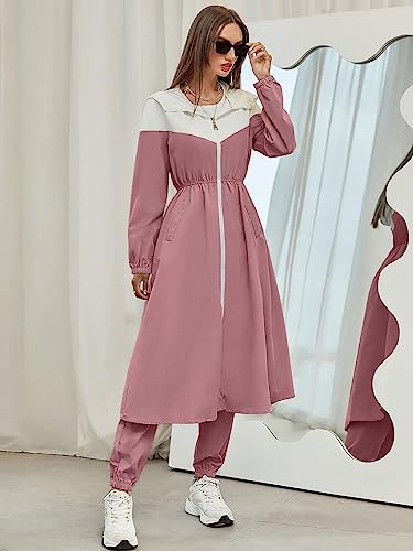 SHEIN - SheIn 2pc Women Clothing Set Women Mulvari Colorblock Zip Up Hooded Coat Sweatpants, M1747751, Dusty Pink, M