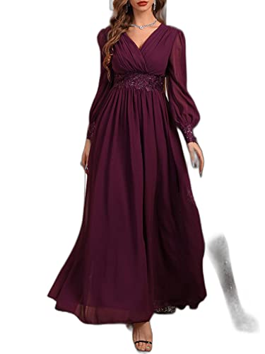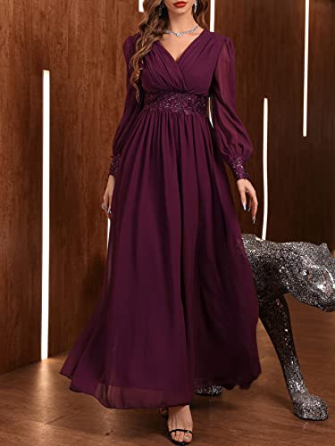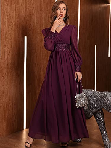 SHEIN - SHEIN Belle Floral Embroidery Sequin Decor Lantern Sleeve Chiffon Formal Dress