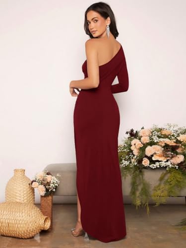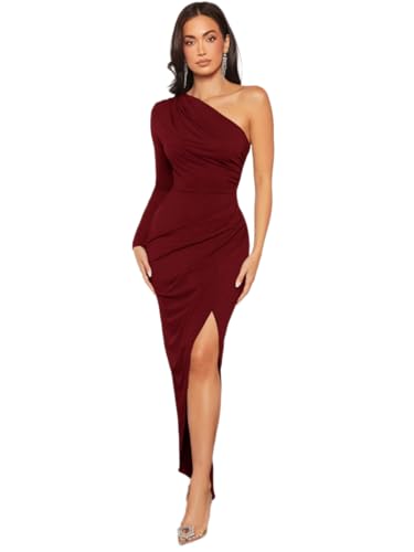 Generic - فستان كوكتيل أنيق برقبة غير متساوية وحافة ملفوفة مكشكشة وأكمام طويلة لحفلات الزفاف والتخرج والمناسبات من شي ان