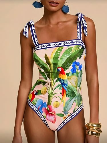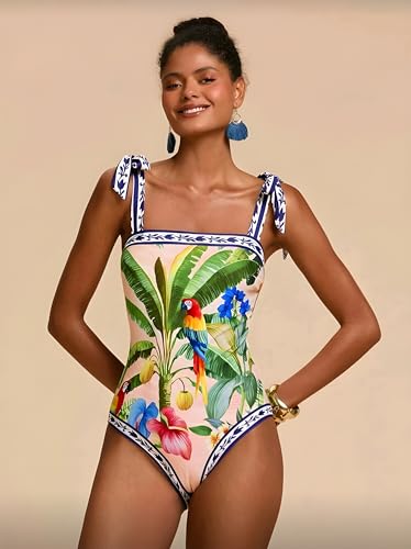Generic - SHEIN F-I Swimsuit,Travachic 1pc Women's Parrot Print One-Piece Swimsuit For Beach Vacation Tropical Swimsuit Summer Bathing Suits Bathing, Beach Outfits, مايوه حريمى