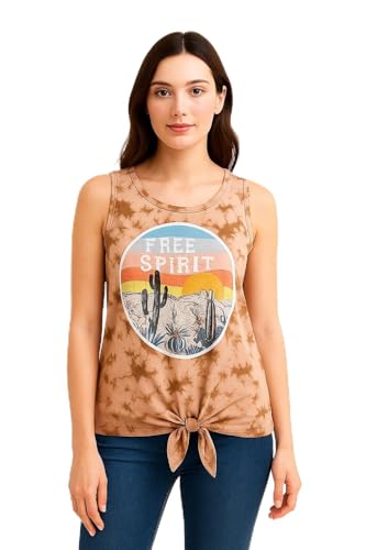 Generic - Shein Free Spirit Desert Sunset Tank Top, Tan Tie-Dye, Sleeveless, Graphic Print, Side Tie Detail