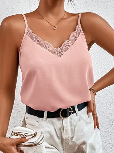 SHEIN - SHEIN Frenchy Contrast Lace Cami Top, M1694051, Dusty Pink, M