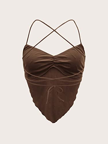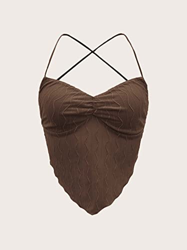 SHEIN - SHEIN ICON Seam Detail Backless Bandana Crop Top, M1674817, Coffee Brown, S