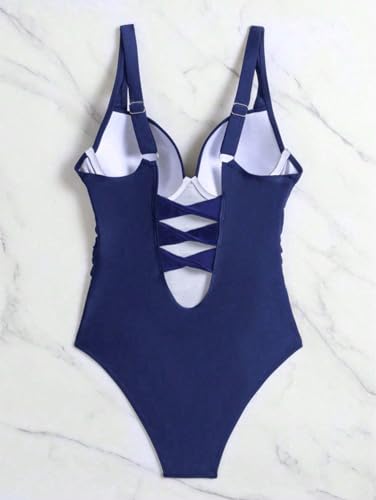 Generic - ملابس سباحة نسائية من قطعة واحدة من شي ان، نمط بيكيني مبطن بوش اب - حزام سباغيتي مكشكش انيق للشاطئ الصيفي والعطلات، قابل للتمدد للغاية
