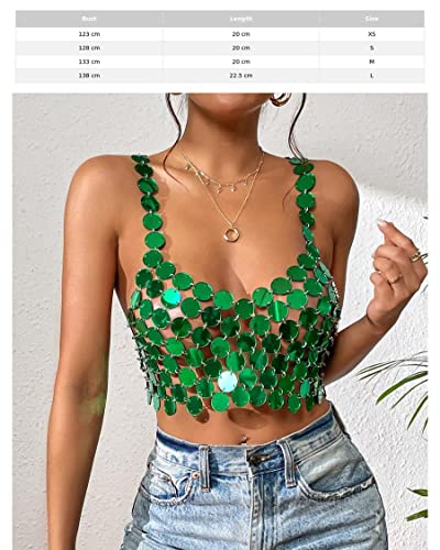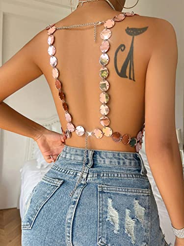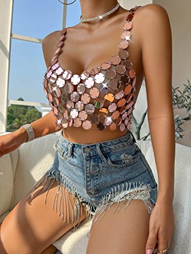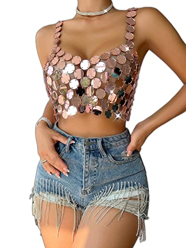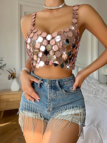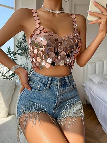 SHEIN - شي ان بلوزة قصيرة بحمالات رفيعة مزينة بالترتر من اس اكس واي، M1684429، روز، مقاس XS، متعدد، للنساء