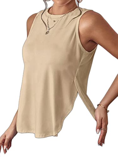 SHEIN - شي ان توب كات سادة بحافة منحنية من يونيتي، M1677477، لون مشمشي، مقاس L