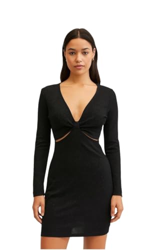 Generic - فستان قصير بقصة ضيقة وتصميم ملفوف من الأمام وأكمام طويلة وفتحة رقبة على شكل حرف V للنساء من شي ان مقاس L