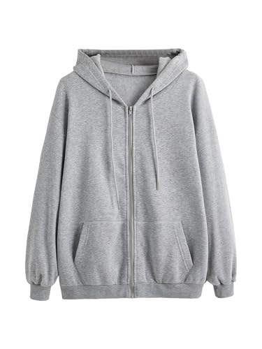 SheIn - SheIn Women's Oversized Long Sleeve Drawstring Drop Shoulder Zip Up Hoodie Sweatshirt, Light Grey, M