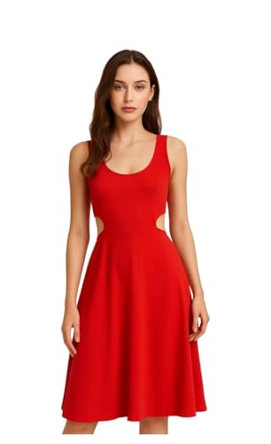 Generic - Shein Women's Sleeveless Cocktail Dress, Red, A-Line Cut with Side Cutouts, Knee Length, Scoop Neck, Party Evening Wear