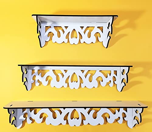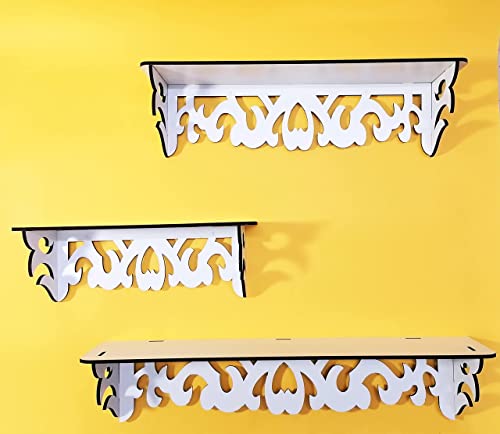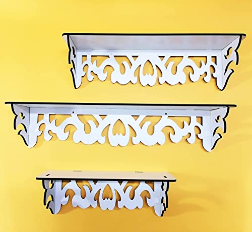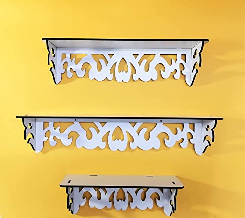 Generic - رف ديكور مزخرف Shelf Chic Rectangular Set White Triple Shelf Rectangular Wooden Decorative