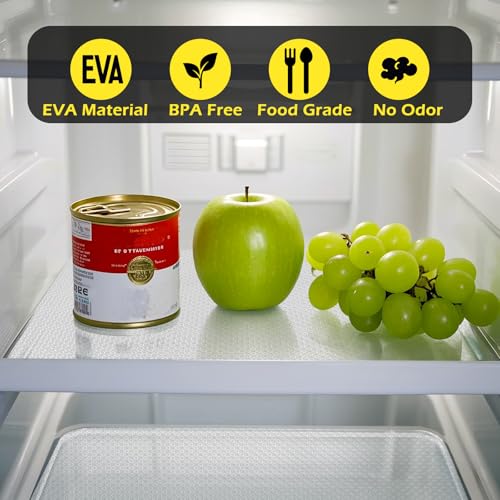 - Quality EVA Material: Each shelf liner with polymer resin material EVA, which has good toughness, durability, no odor and BPA Free. Kitchen cabinet drawer mats are safe for direct contact with fruits, vegetables and knives, forks, chopsticks.
