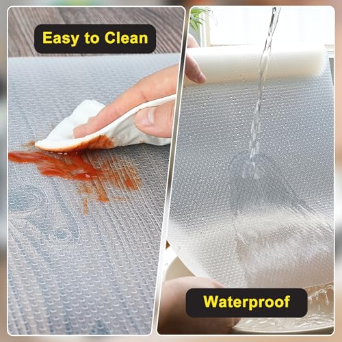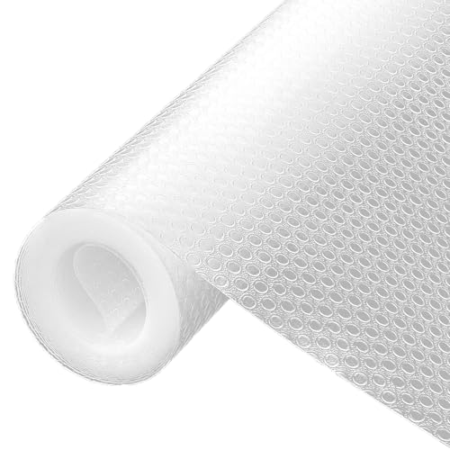 KIMCHOMERSE - Shelf Liner, Waterproof Refrigerator Liner, Drawer Liners for Kitchen Cabinet, Bathroom Under Sink Mat Non Adhesive Fridge Liner EVA Place Mats Roll - Clear 17.7"×118"