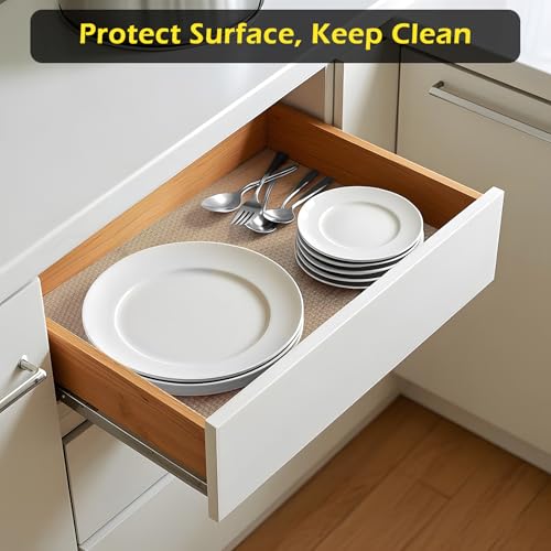 - Easy-Clean Kitchen Drawer Mat: The drawer liner is waterproof and oilproof, when the kitchen table mat is stained with oil or other dirt, just wipe it with a mild soap and a damp towel to keep it clean.