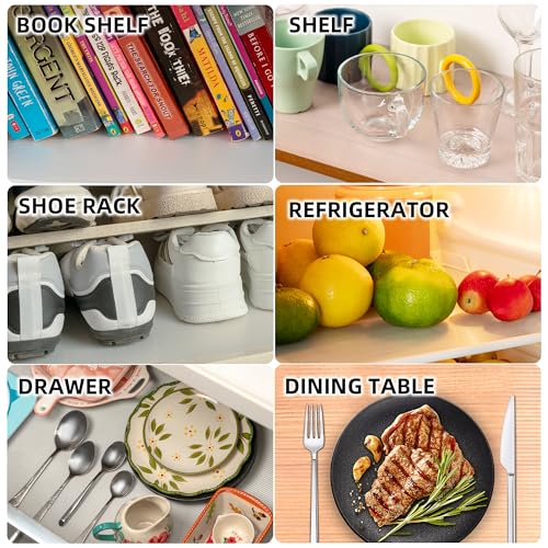 - [Non Slip & Non Adhesive] Our cabinet shelf liner has has a unique striped design, that made the kitchen drawer liners provides excellent slip resistance.And the shelf liner non adhesive design. It will not damage the surface of shelves or drawers and can be easily removed and replaced than other kinds of drawer liners.You will find that’s a great fridge liners,fridge liners,kitchen shelf liners for kitchen cabinets,cabinet mat,liners for cabinets and drawers,refrigerator drawer liners.