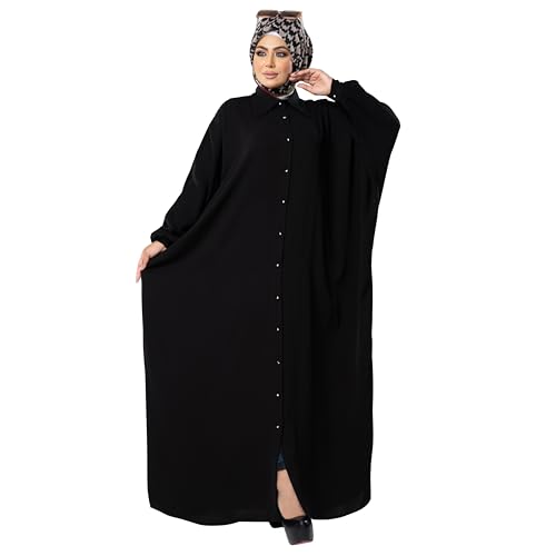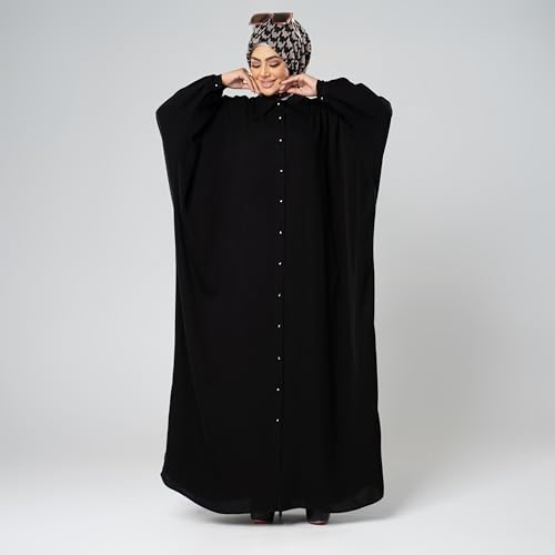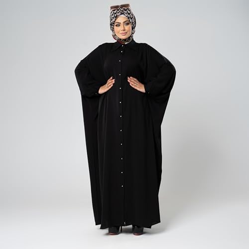 FOOBS - Shemiz Casual Abaya for Women Yara Black Material Soft Material High Quality Free Fits All Body - Modest and Stylish Design Perfect for Outing Travel Umrah Hajj, M