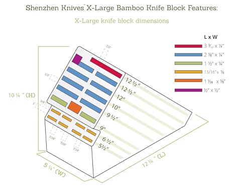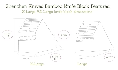 - This new size X-Large has even deeper slots to better accommodate larger items such as scissors, chef's knives and slicers. Check out our knife block dimensions in the product photos to make sure you are making the right choice!