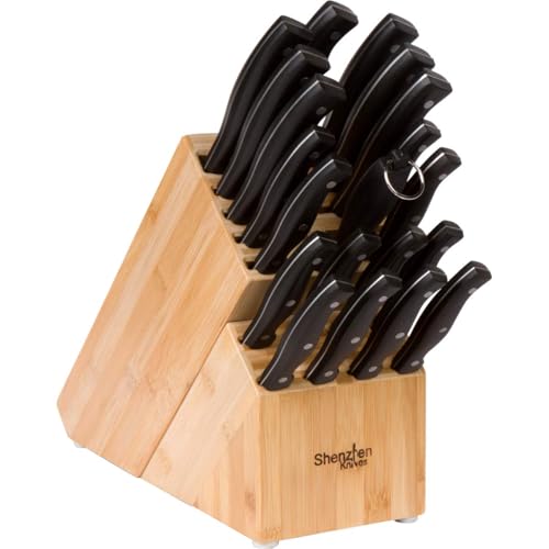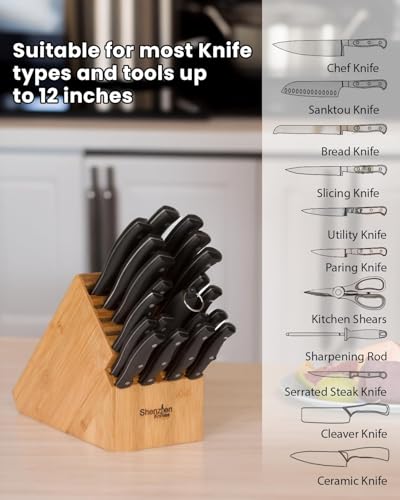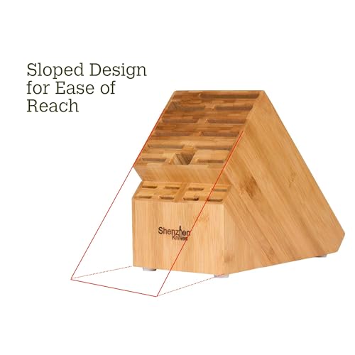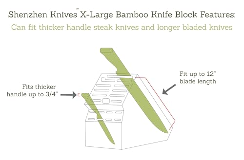 Shenzhen Knives - Shenzhen Knives Universal Knife Block with 20 Wide Slots: in X-Large Bamboo Wood Knife Block without Knives - Butcher Block Knife Holder and Organiser for Easy Storage of Kitchen Knives