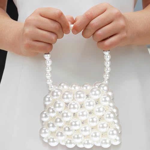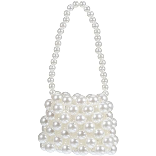 SHERCHPRY - شنطة يد صغيرة مزينة باللؤلؤ للنساء من شيرشبري الابيض لحفلات الزفاف مع سلسلة اللؤلؤ متعدد الألوان