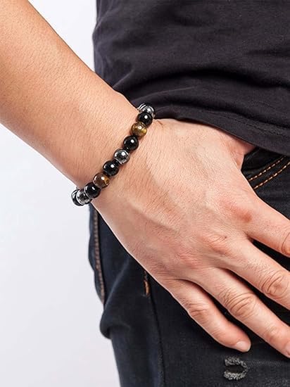 Generic - سوار احجار شاكرا ريكي الطبيعية العلاجية من شريف، سوار باور 3 احجار قابل للتمدد مصنوع يدويا للجنسين، مصنوع يدويًا ومصمم للارتداء اليومي، مما يجعله فكرة هدية فريدة من نوعها.