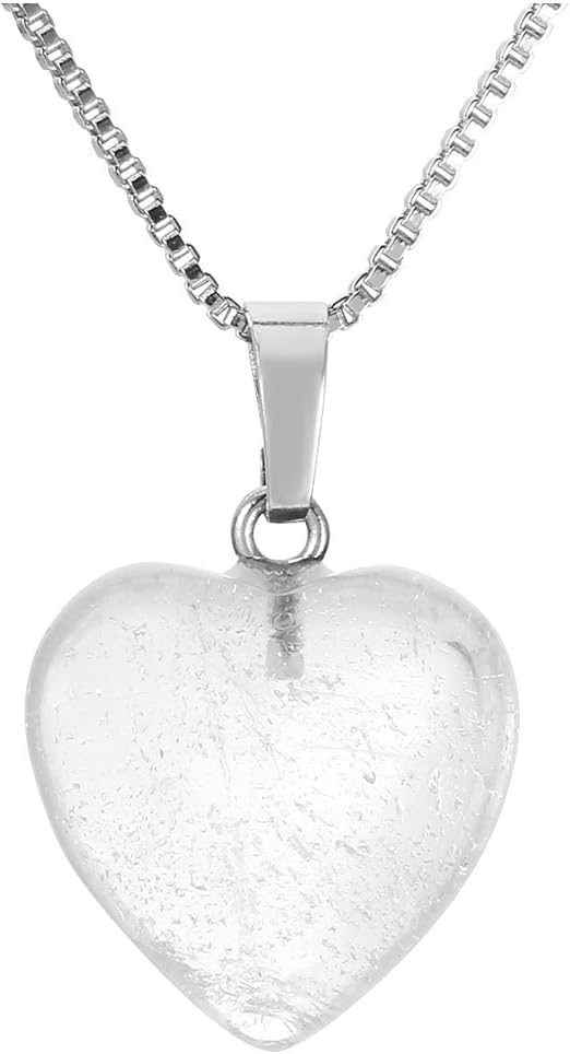 Generic - Sherif gemstones Jewellery Women's Heart Pendant Crystal Therapy Energy natural Stone Pendant Healing Stones Pendant with Chain, Gemstone, clear Quartz
