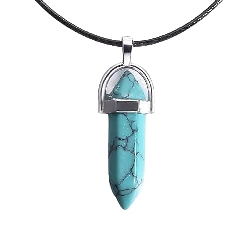 Generic - Sherif Gemstones Natural (Blue Turquoise) Natural Gemstone Hexagonal Obelisk Pointed Reiki Chakra Pendant Necklace, men & Women, Boys and Girls, Best Gift