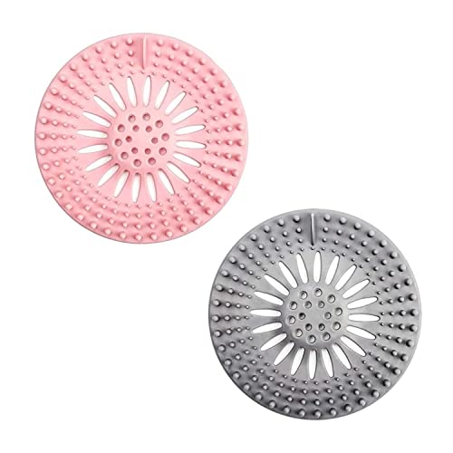 SHFTI - أغطية تصريف الدش من شفتي، مرشح حوض لاقط للشعر من السيليكون المتين ومصفاة الحوض، ملحقات حمام نظيفة، سدادة تصريف لحوض الاستحمام (لون عشوائي) (عبوة من قطعتين)