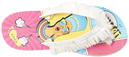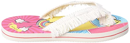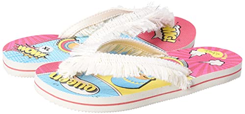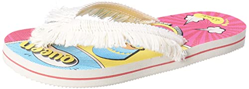 Shibshibi - شبشب فليب فلوب بنعل من المطاط متعدد الالوان مع شريط من القماش بلون ابيض للبنات من شبشبي، متعدد الالوان - مقاس M