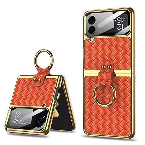 SHIEID - جراب حماية لموبايل سامسونج فليب 4 مع حلقة نسيج محاك جالاكسي Z شبكة الجيل الخامس 5G بنمط رجال الاعمال من شيلد برتقالي جلد بولي كربونات