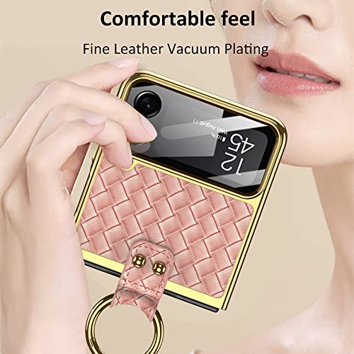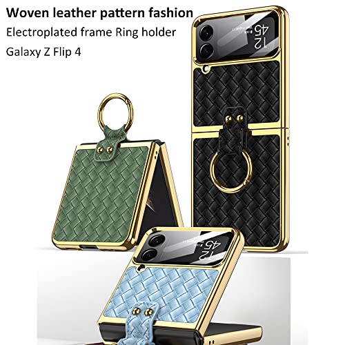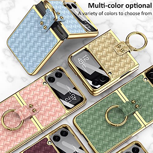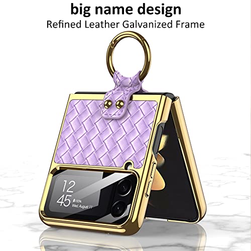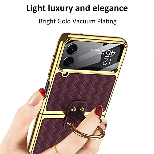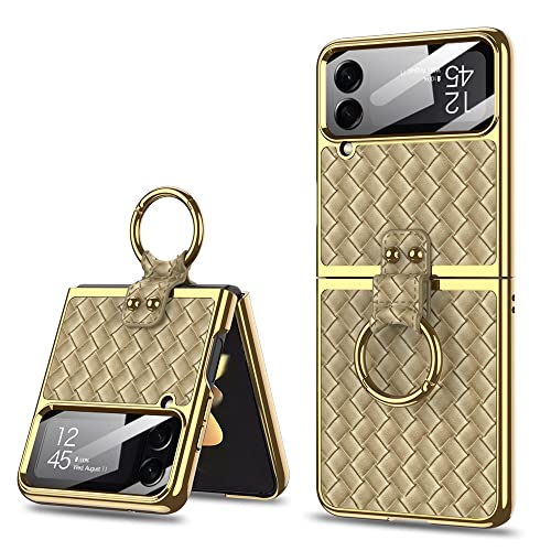 SHIEID - جراب حماية لموبايل سامسونج فليب 4 مع حلقة نسيج محاك جالاكسي Z شبكة الجيل الخامس 5G بنمط رجال الاعمال من شيلد شامبانيا شفاف بولي كربونات معدن جلد نيوبرين معدنية البولي