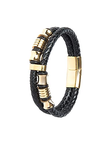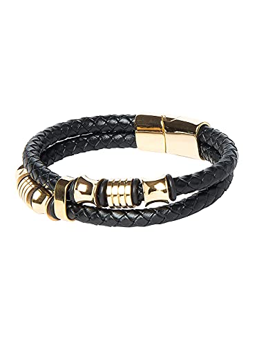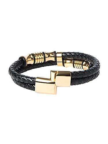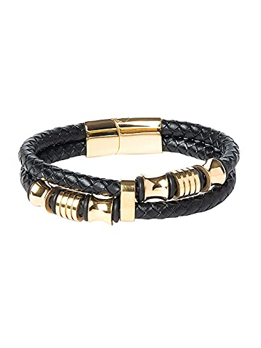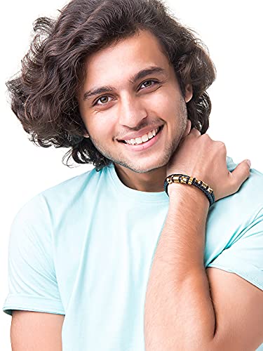 Shining Jewel - By Shivansh - Shining Jewel - By Shivansh Braided Designer Stainless Steel and Leather Bracelet for Men, Boys and Women [Unisex] Black (SJ_3347_G), Brass
