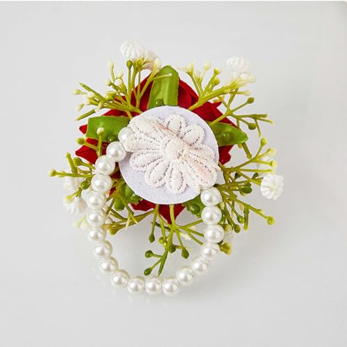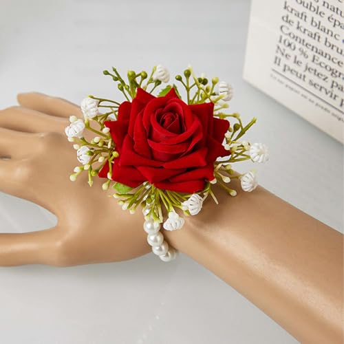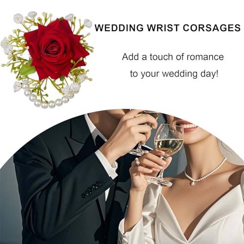- 【2-Piece Prom Flower Corsage for Wrist & Boutonniere Set】Our elegant red corsage bracelet and boutonniere set designs for prom, weddings, and other special occasions. This set includes a delicate red wrist corsage and a boutonniere, crafted to add a touch of sophistication to your outfit.