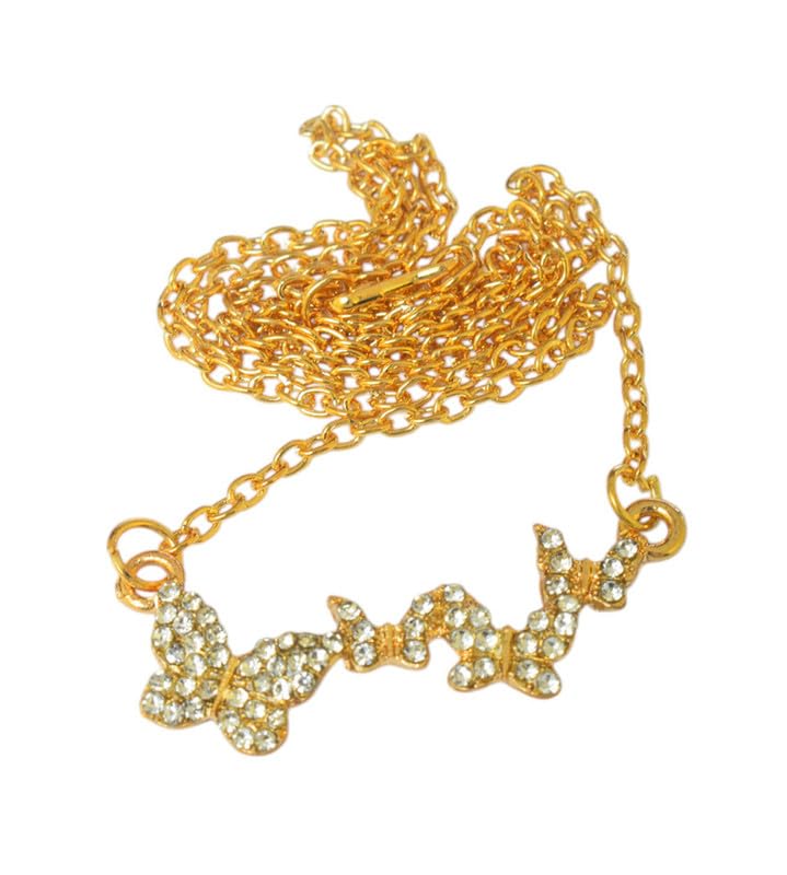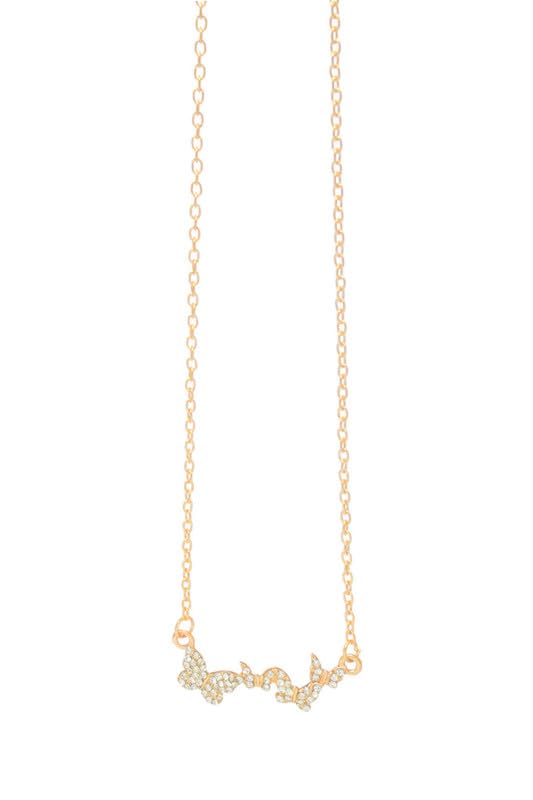 Generic - عقد بتصميم فراشات مزدوجة لامعة للنساء - ذهبي