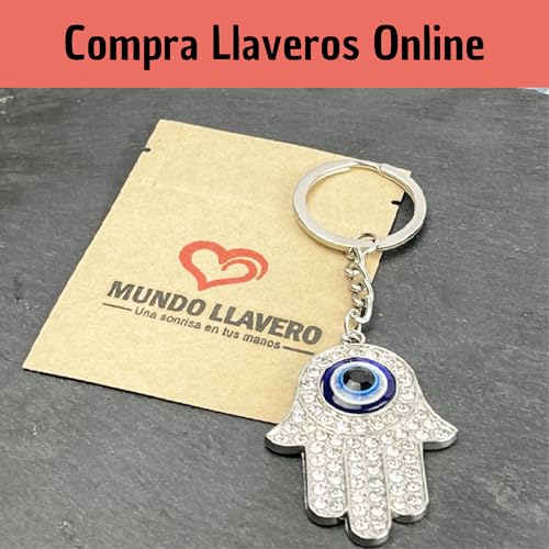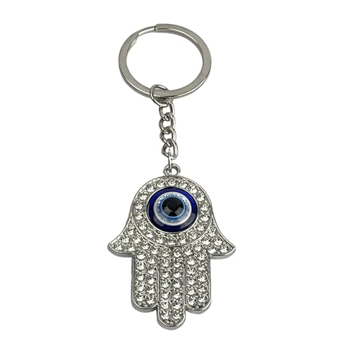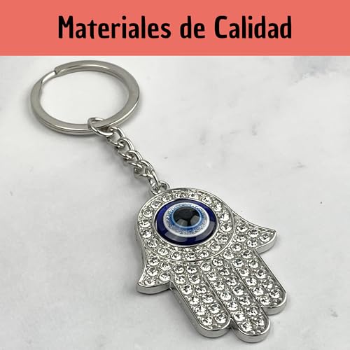 Mundo Llavero - Shiny Hamsa Hand Keychain with Blue Turkish Eye - Hamsa Keychains or Fatima Hands with Shiny Pearls - Evil Eye Lovers Key Accessory, Dream Catcher… - Unisex Keychain for Men and Women