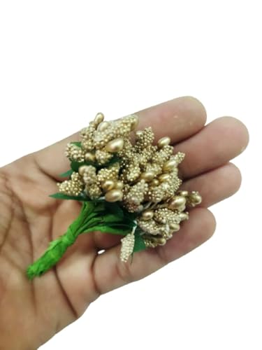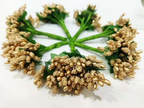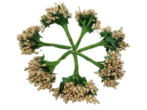 SHIVAMKRAFT - 6 Bunch Artificial Pollen Flowers for Art and Craft Tiara Headband,for Tiara Making and Jewelry Making 72 Pollens (6 Bunch) (Golden)