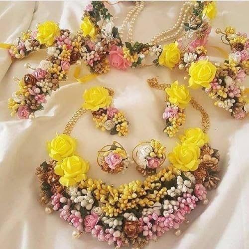 - Artificial Flowers for Art and Craft Making and Jewelry, Artificial jewelry set featuring gold flower designs, Includes a floral necklace and earring set, Can be worn as a fashion accessory or costume jewelry set.
