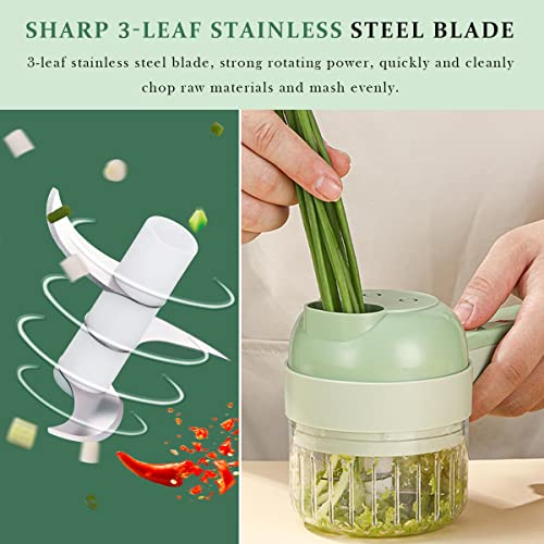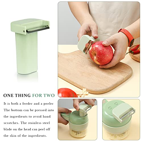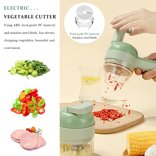 - 4 in 1 Handheld Electric Vegetable Cutter Set: Handheld Electric Vegetable Cutter Set includes 4 in 1 functions of slicing, cooking, peeling and cleaning brush. With it, you can have an electric vegetable slicer and an electric meat grinder at the same time. One machine is multi-purpose, making food preparation easier and faster.