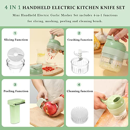 Shker - Shker 4 in 1 Handheld Electric Vegetable Cutter Set, Electric Garlic Mud Masher Food Chopper, Portable Mini Wireless Food Processor with Cleaning Brush for Garlic Pepper Chili Onion Celery Ginger Meat