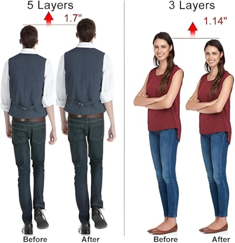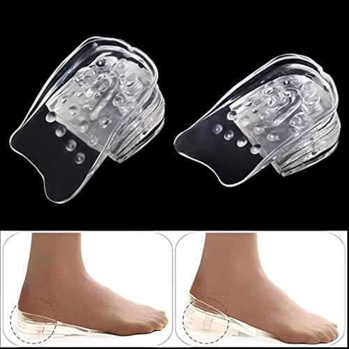 - These adjustable 5-layer silicone gel insoles allow users to precisely customize their height increase up to 3 cm by adding or removing individual layers, offering a personalized solution for posture improvement and subtle stature enhancement without compromising comfort.