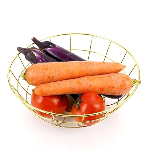 - This metal fruit bowl is designed for countertops and acts as both a storage basket and an elegant home decor item. With a golden finish, it adds a touch of luxury to any kitchen or dining room, ensuring your space looks neat and stylish while offering ample storage for fruits, snacks, or even decorative items.