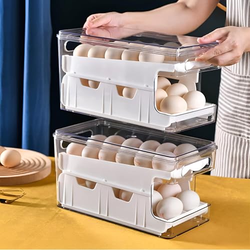 Generic - Shockproof Egg Carrier - Automatic rolling egg holder for refrigerator, double‑layer shockproof storage box with smooth sliding, stackable, space‑efficient layout, compartments, BPA‑free plastic.