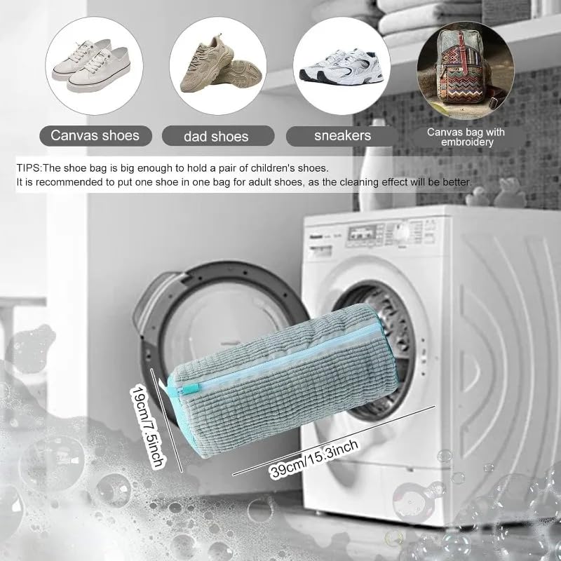 - سحّاب قوي مع قفل أمان: يضمن سحّاب النايلون المتين بقاء الأحذية داخل الحقيبة بأمان أثناء الغسيل. غطاء واقٍ يمنع خدوش الغسالة، مما يضمن استخدامًا طويل الأمد.