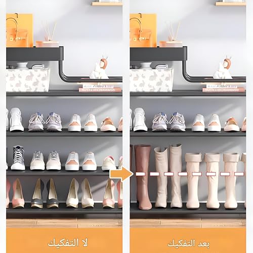 - This shoe organizer features five functional layers, increasing vertical space, allowing you to display and access your shoes in style while keeping them organized and free from dust and damage.
