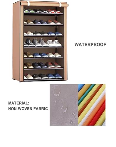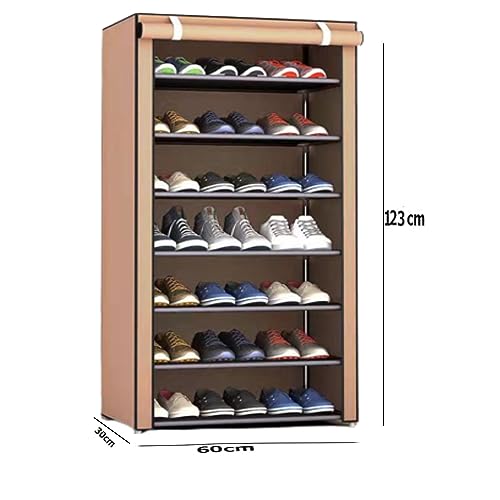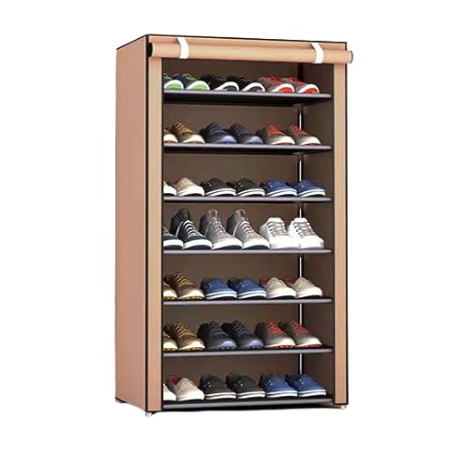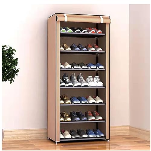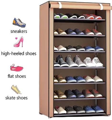 Peng General - Shoe Rack, Peng General 7-Layer Stylish Shoe Organizer, Shoe Rack for Entryway Hallway Storage Furniture with Non-Woven Fabric Dustproof Cover, Open Shelves Perfect for organizing shoes (Brown)