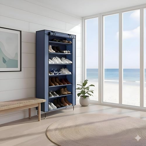 Generic - رف احذية مع 7 ارفف - منظم واسع مع 7 طبقات وغطاء قابل للازالة لتنظيم الاحذية والحفاظ عليها مرتبة عند الباب وحمايتها من الفوضى.