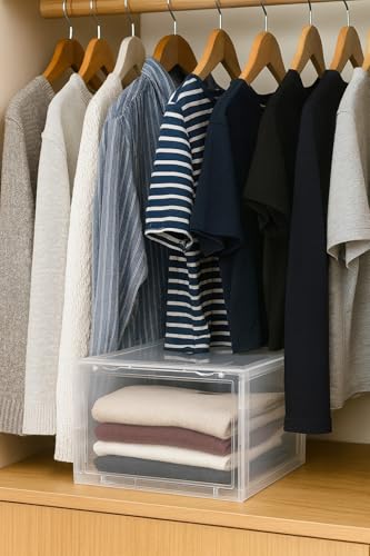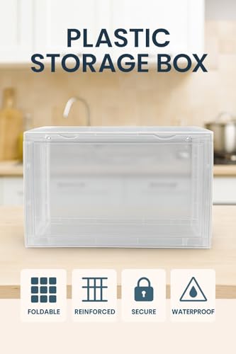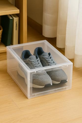 Generic - صندوق تخزين الأحذية، منظم شفاف من الأكريليك قابل للتكديس مع غطاء مغناطيسي، صندوق تخزين قابل للطي للخزانة سهل التجميع، رف أحذية متين