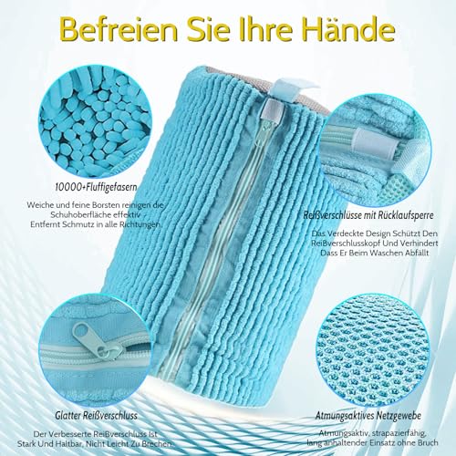 Jigspsyzh - Shoe Wash Bag Washing Machine – Reusable Wash Bag for Shoes of All Kinds, Gentle Washing, Non-Slip Zip – Qualitätas Shoe Flash Cleaner Blue