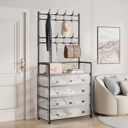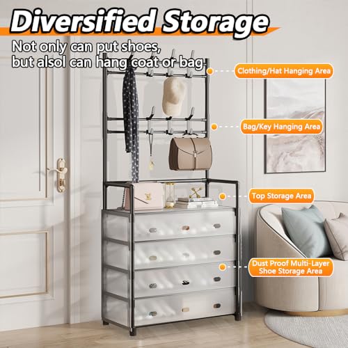 - 【منظم معطف 3 في 1 صغير ومفيد】تصميم متعدد الوظائف، يجمع بين المنظم بين أرفف الأحذية وخطافات المعاطف ورف التخزين، يمكن وضع شجرة المدخل بأناقة بجوار الباب لتوفير المساحة. مناسب للمدخل أو الردهة أو غرفة المعيشة أو المكتب. يمكنك وضع معاطفك وشنطتك وأحذيتك في أي وقت.
